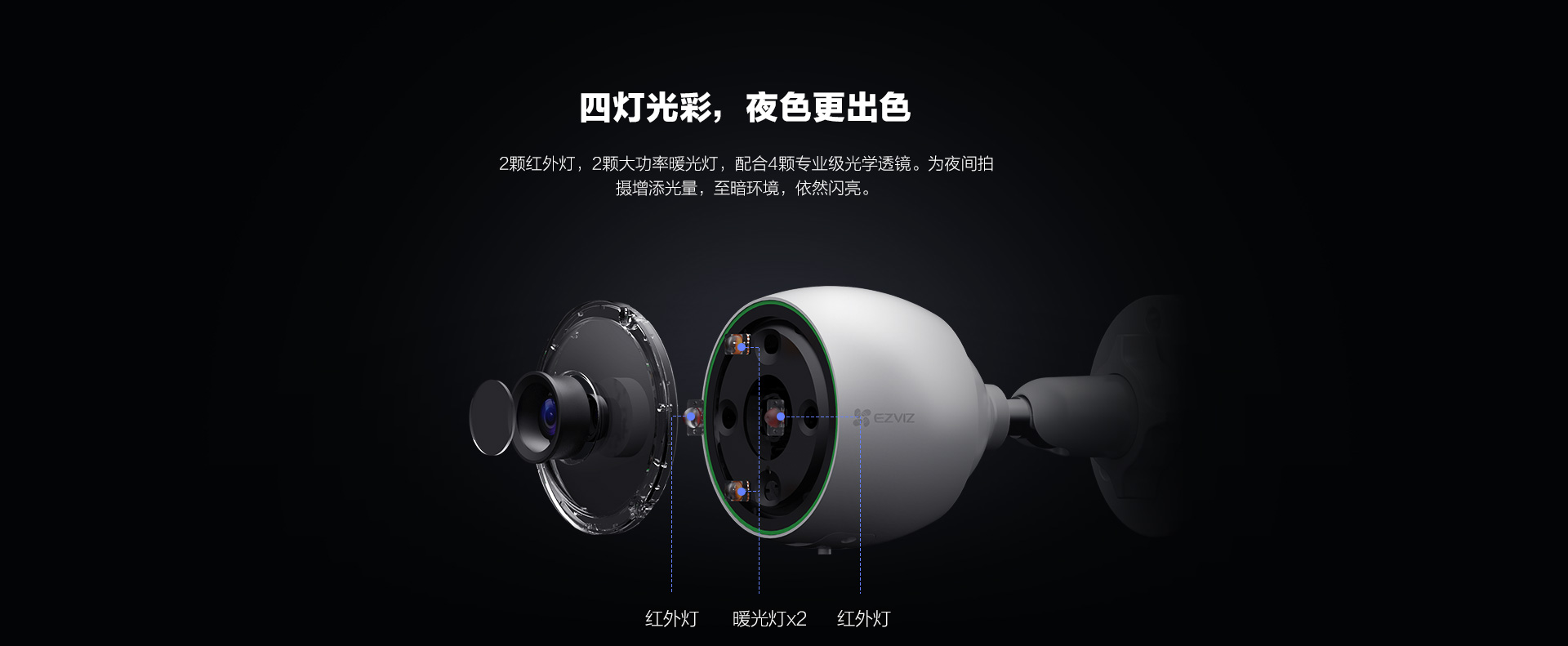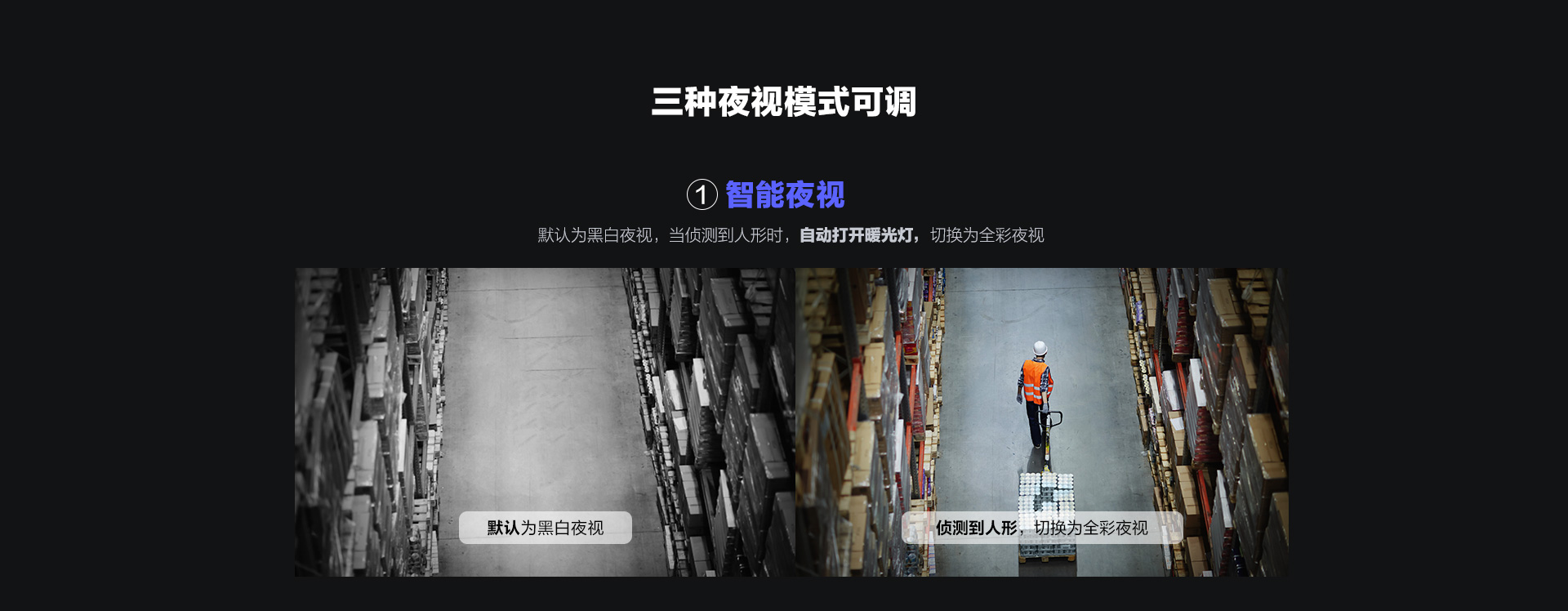 夜晚補光模式白光燈補光、紅外燈補光